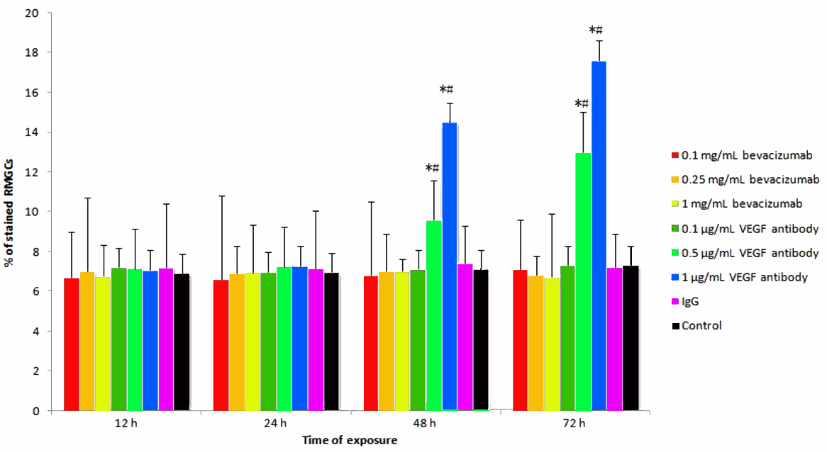 increased remarkably. The percentage of stained RMGCs was not affected after exposure to bevacizumab, IgG, and fresh control