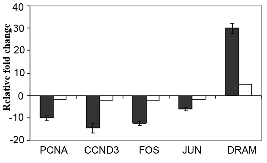 cyclin D3, FOS represents v-fos FBJ murine osteosarcoma viral oncogene homolog, JUN represents jun oncogene, and DRAM represents