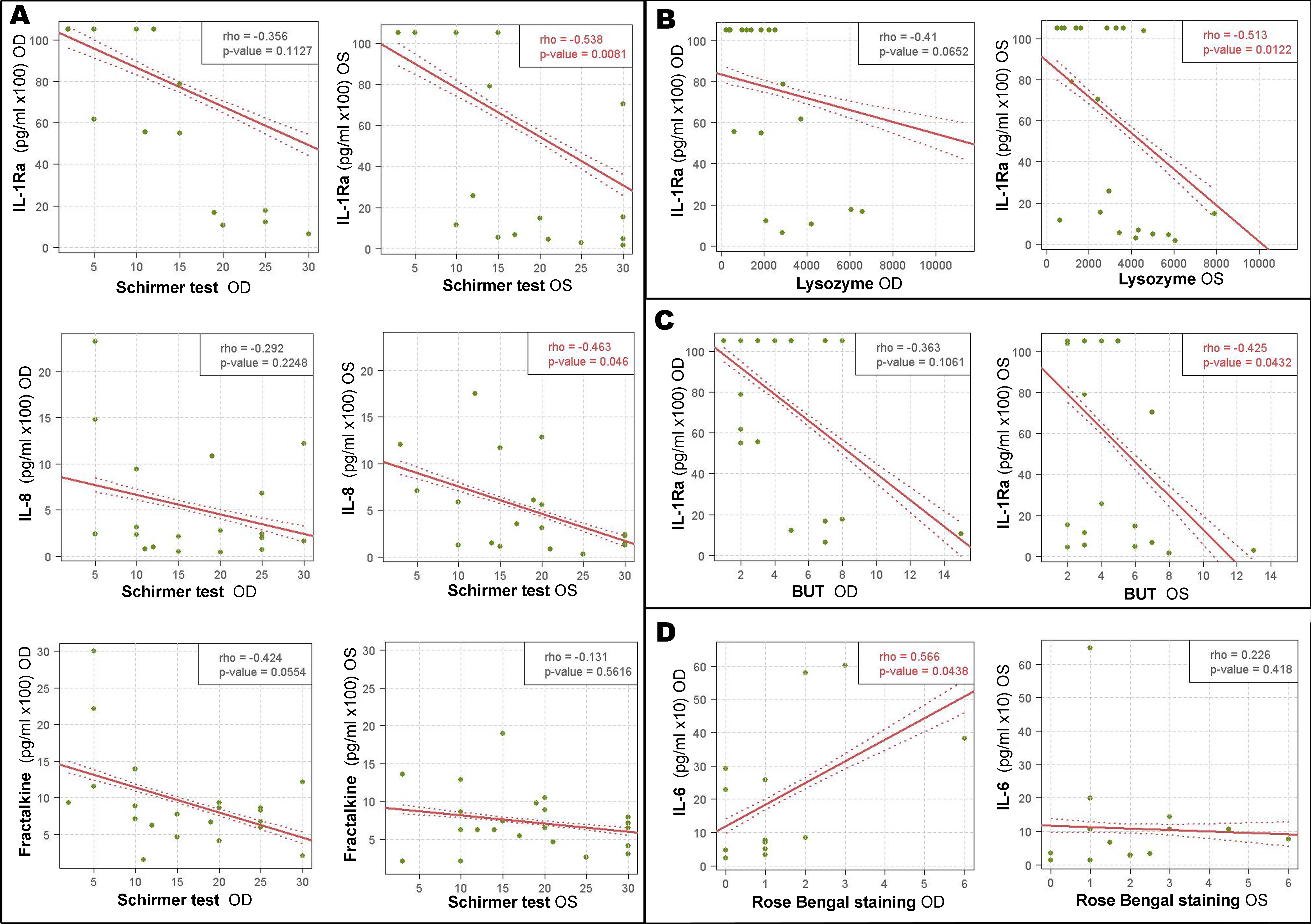 and D: Rose Bengal staining. Cytokine/chemokine values are