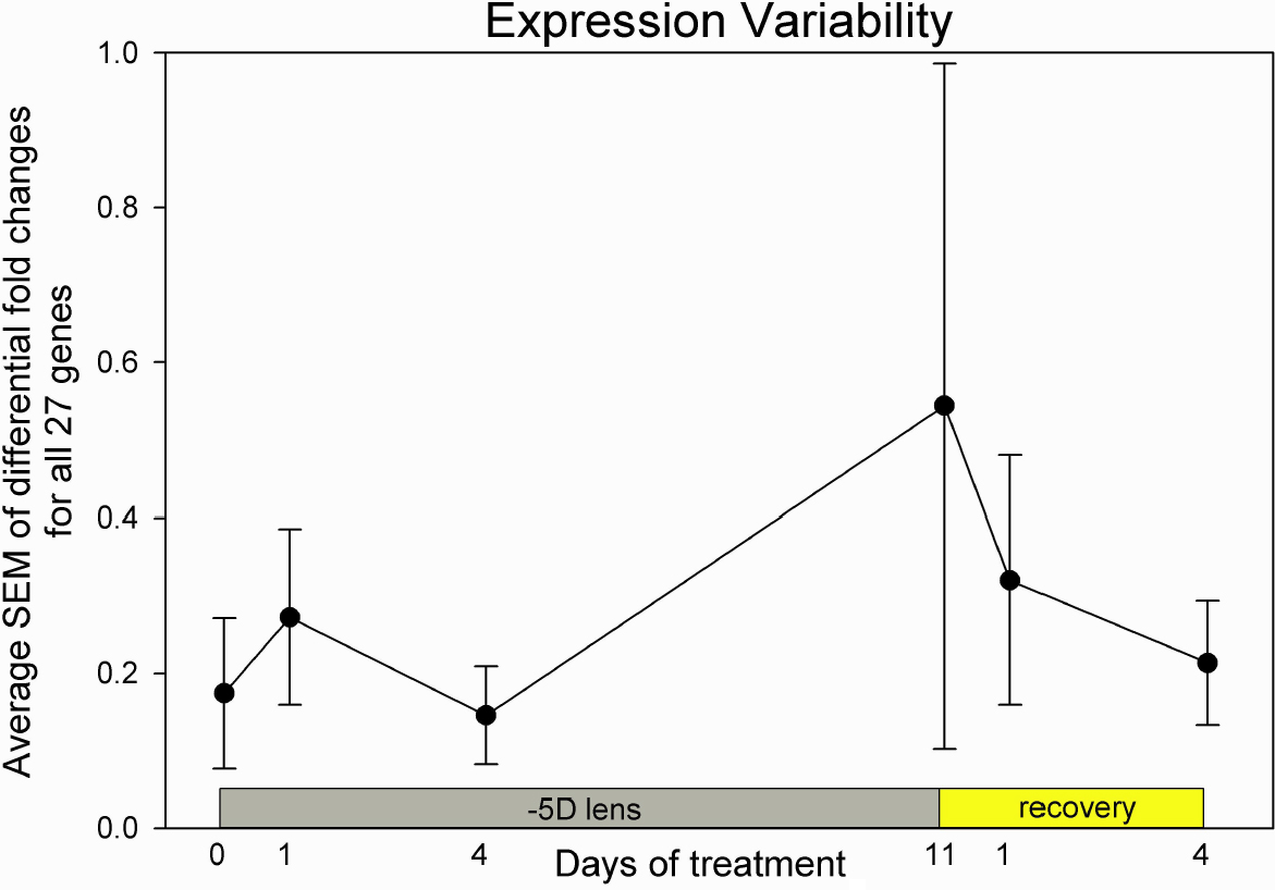 Figure 3. The average of the SEM values of the differential gene expression for all 27 genes is shown for the 24 VE normal group (day
