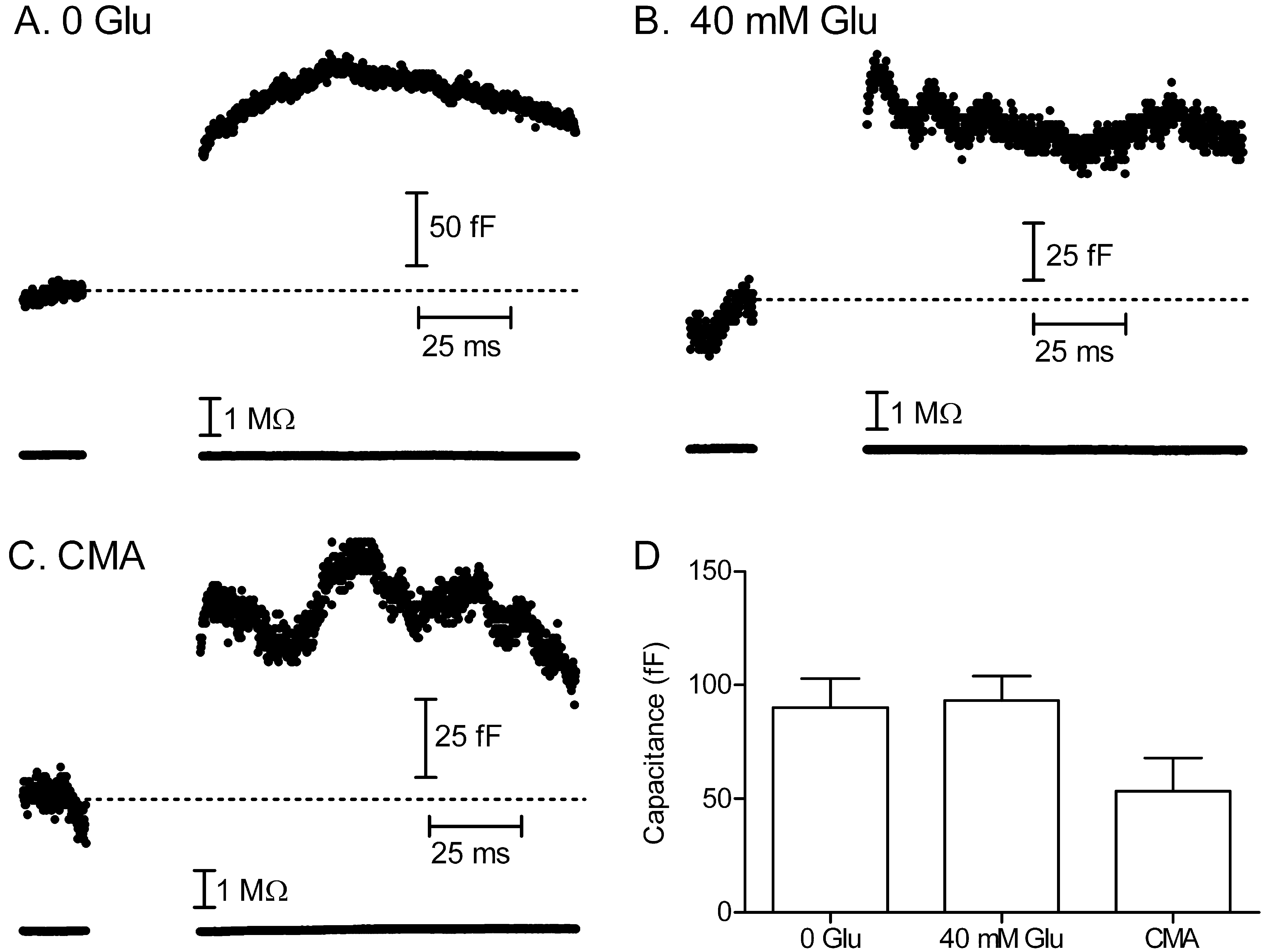 increases in membrane capacitance evoked by depolarizing stimulation of