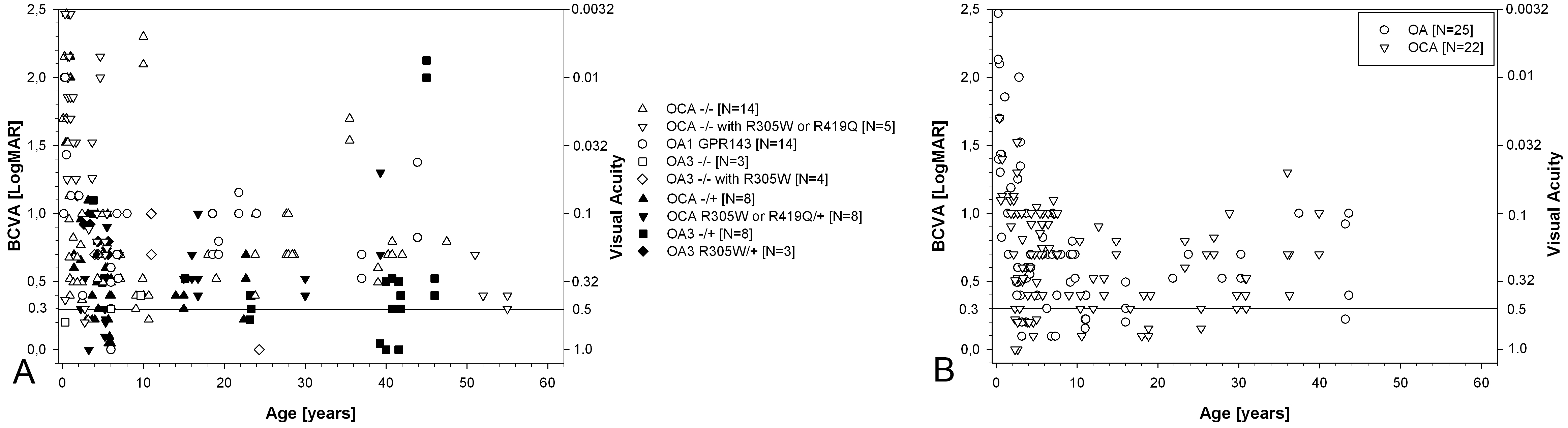 acuity (BCVA) data obtained in oculocutaneous albinism (OCA) and ocular