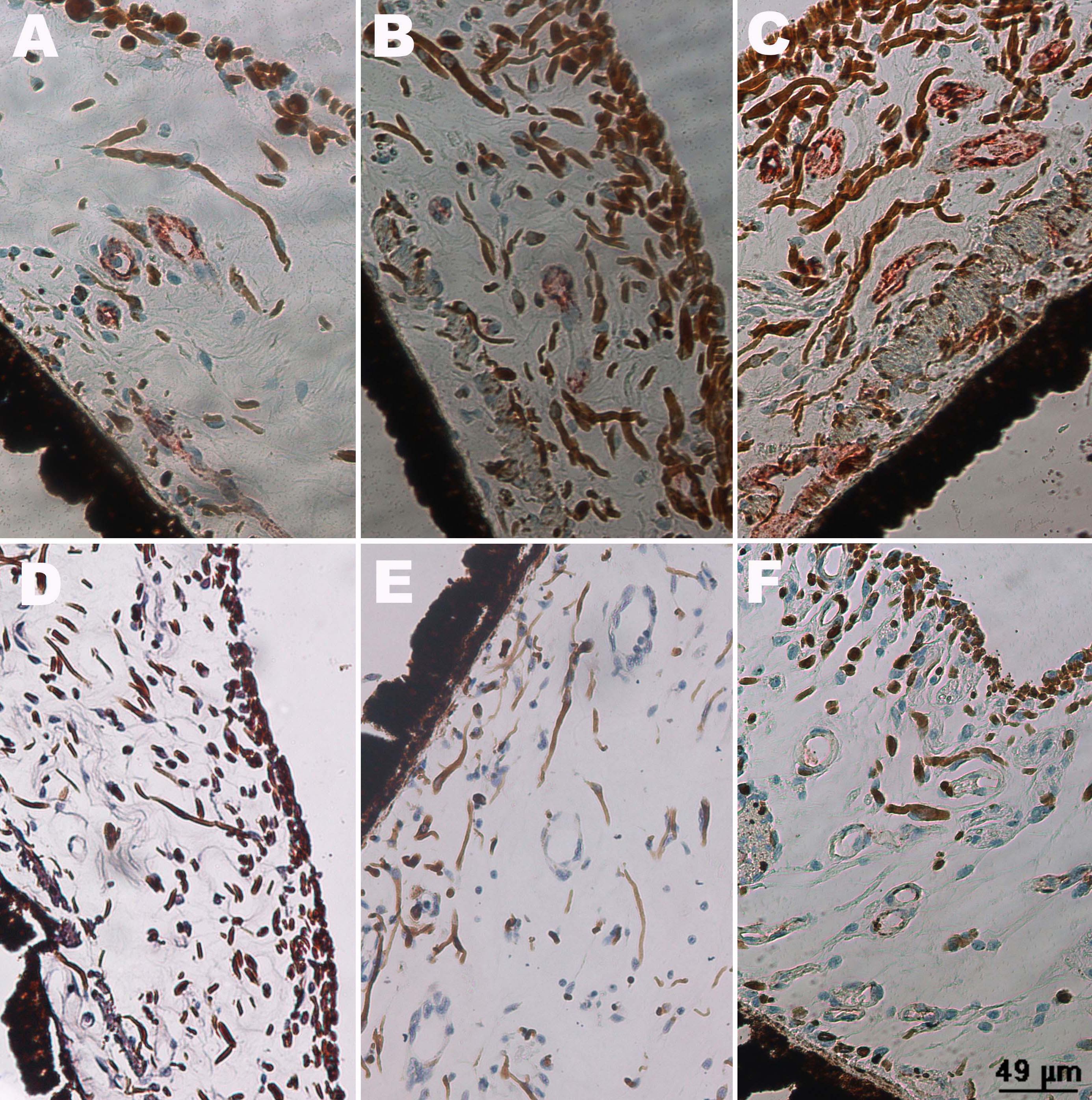 vessel walls of iris in the central retinal vein occlusion groups (A:
