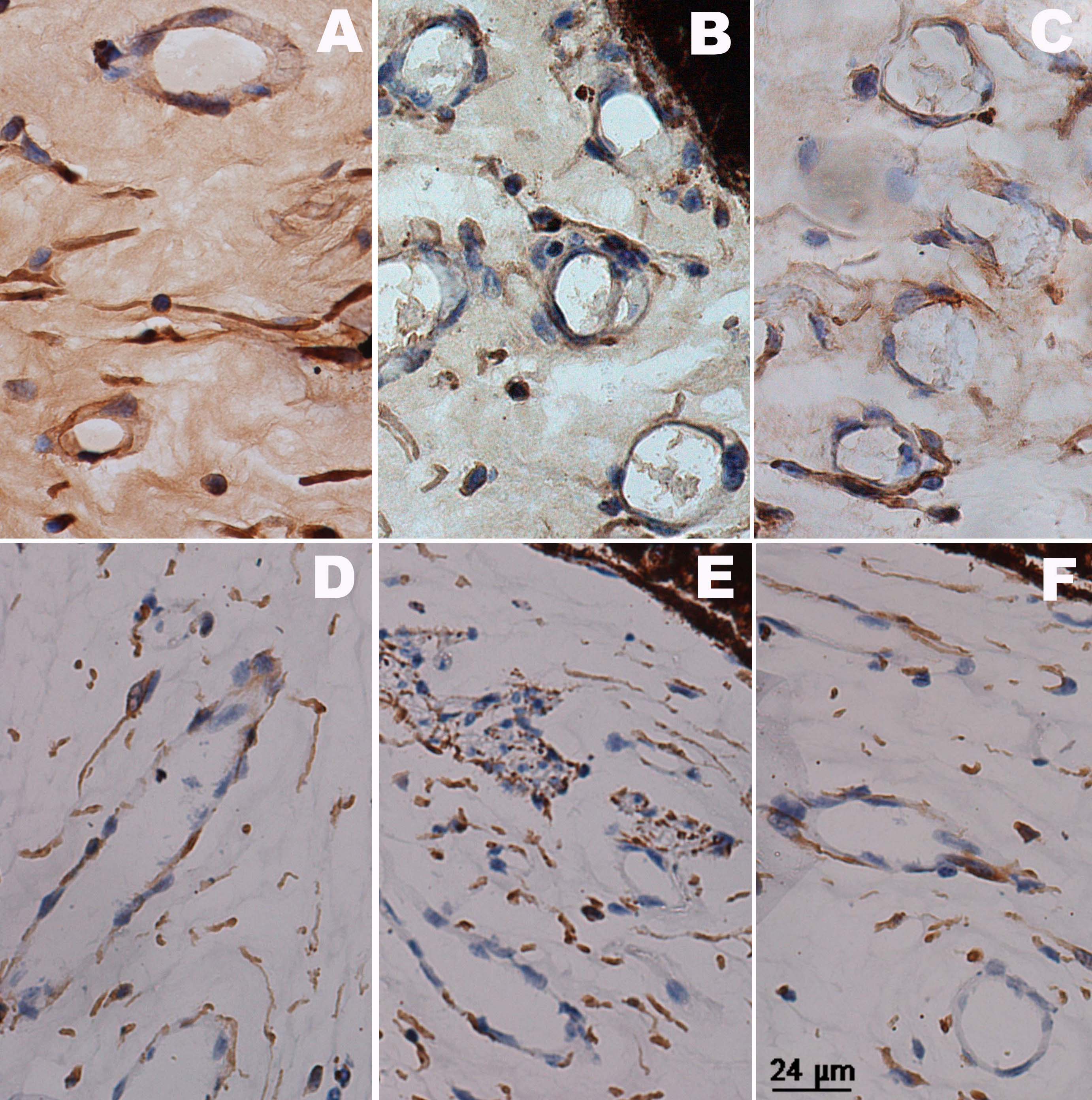 in iris vessel walls in the central retinal vein occlusion groups (A: