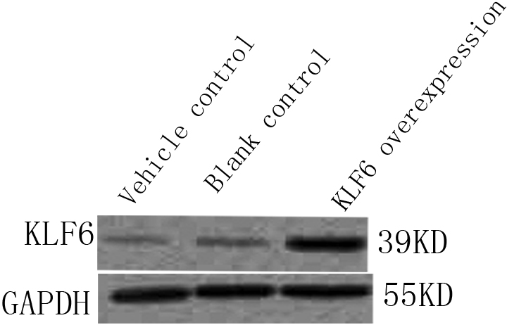 group and blank control group (lane 1 and 2) in vitro. However, there was increased expression of KLF6 in the experimental