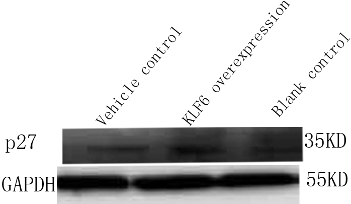 in rSF transfected with pKLF6 cDNA. Expression of p27