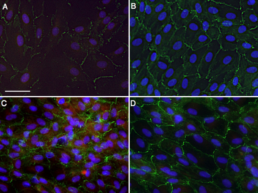 33258 (blue). B: Cellular localization of Snail (red) and N-cadherin (green) at 7 days after passage. C, D: Cellular localization of Snail (red) and N-cadherin (green) after C TGF-β stimulation (10 ng/ml) and D PBS at 7 days after passage. Scale bar=50 µm.
