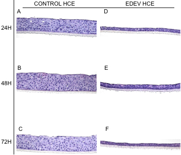 Histomorphological analysis of 3D-HCE after 24 h, 48 h, and 72 h cultivated in control condition (