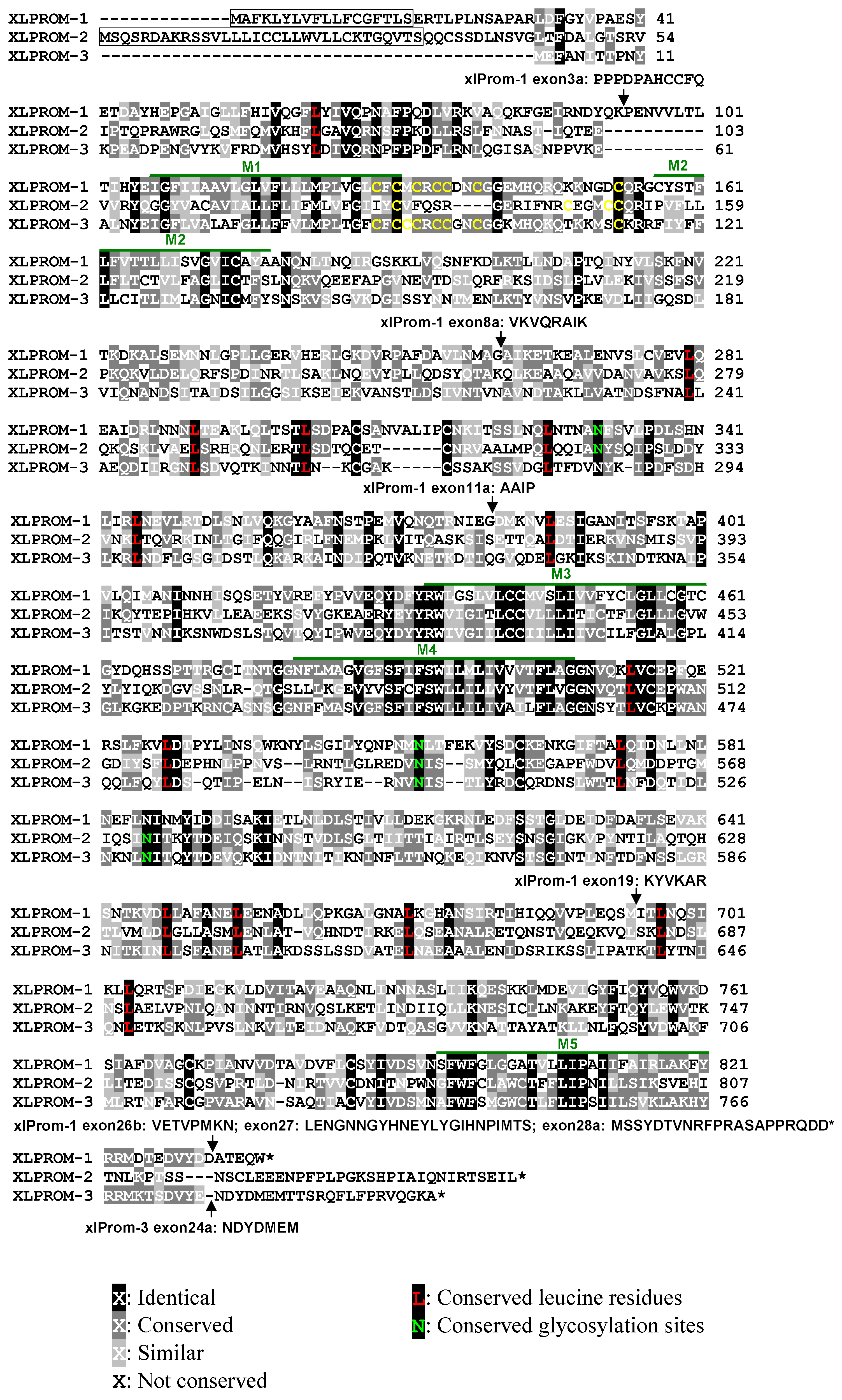 peptide was predicted for xlProminin-3. Positions of alternatively