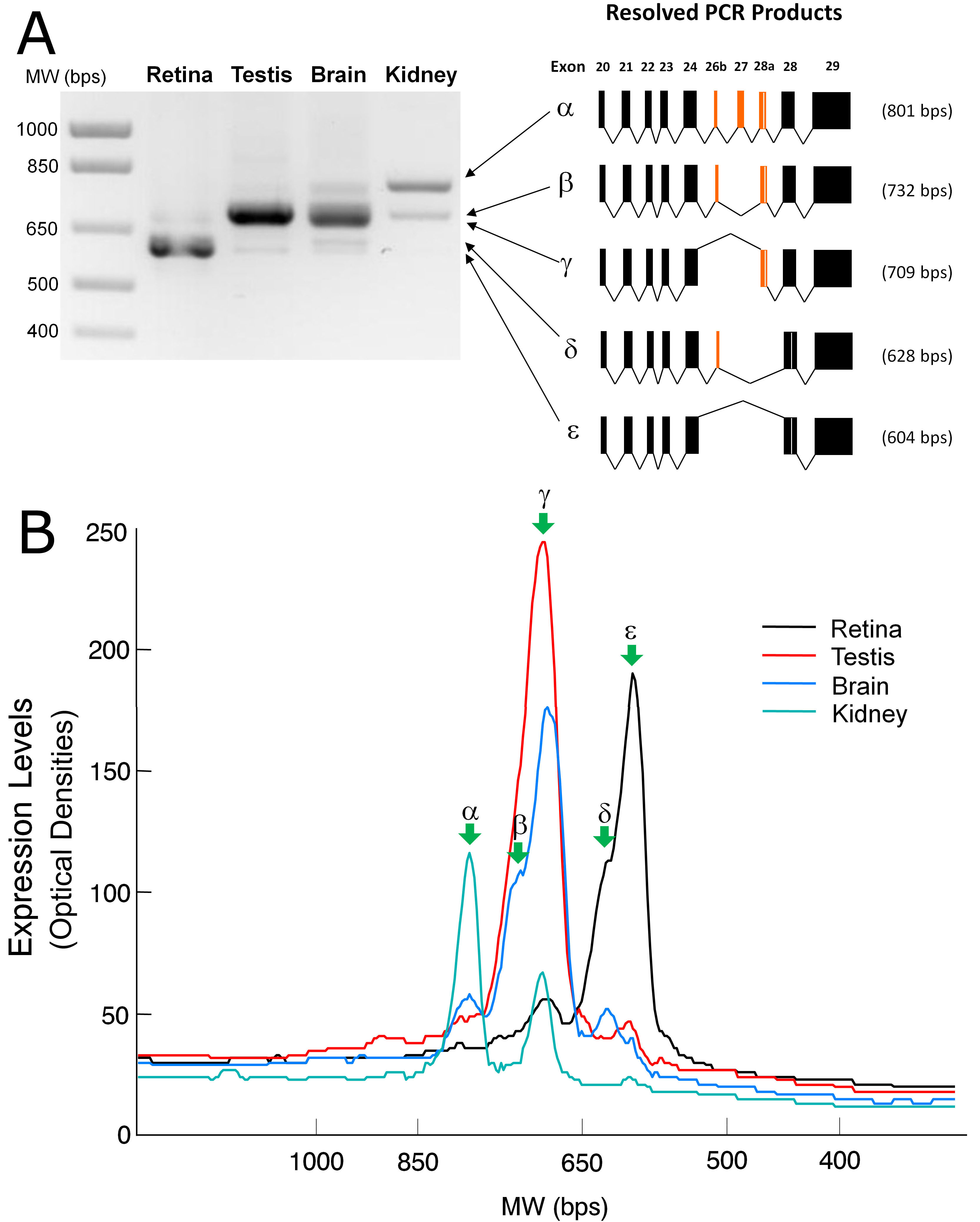testis, and kidney. The resolved RT–PCR products were linearly scanned