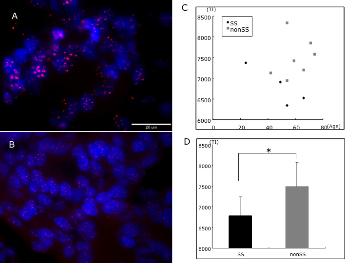 syndrome. Representative telo-FISH photograph of non-Sjögren syndrome (A)