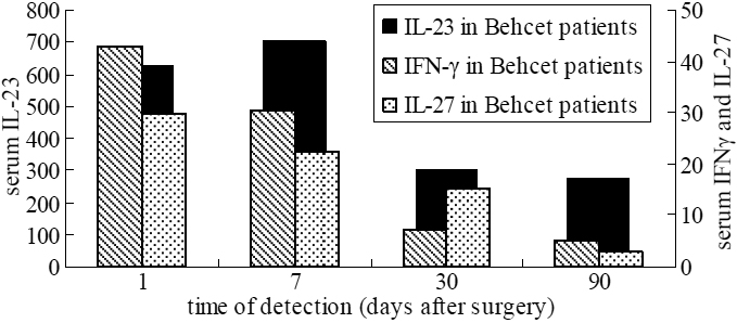The change in cytokine levels (pg/ml) of BD patients after surgery.