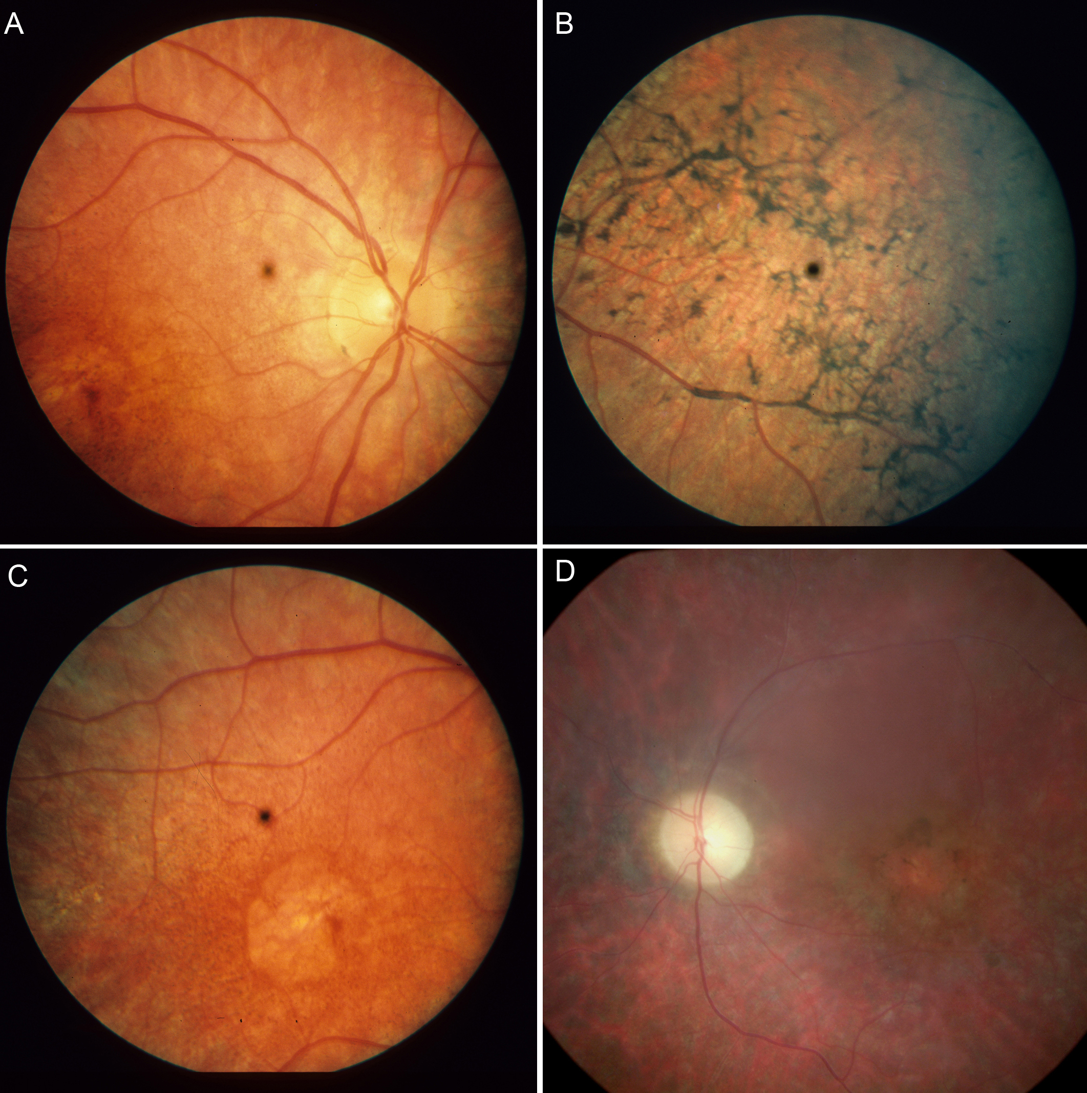 inferotemporal aspect, widespread mottled pigment epithelial atrophy