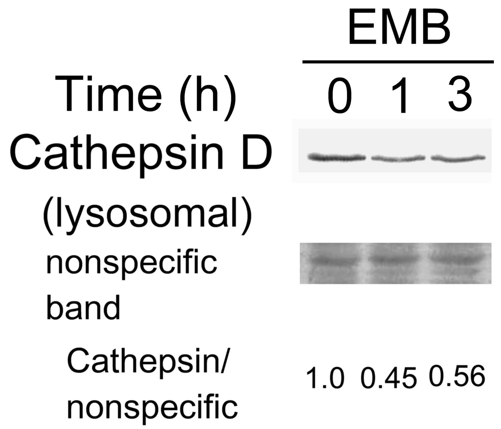treated with 0.8 mM EMB for 0, 1, and 3 h. A western blot of cathepsin