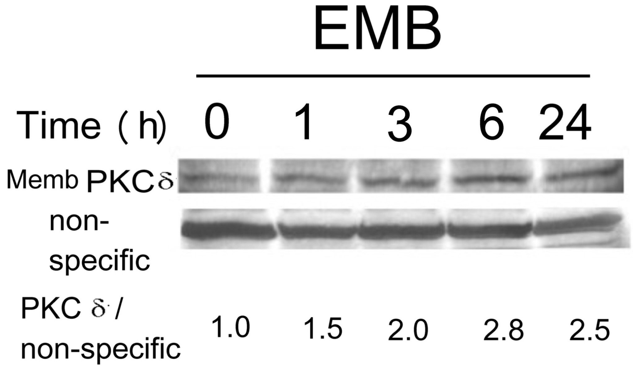 ratios of the band intensity of PKC δ versus a non-specific band,