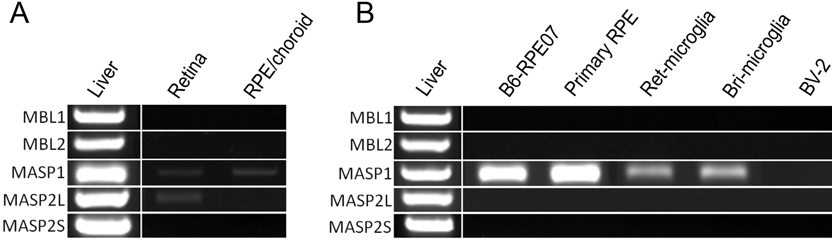 expression of MBL1, MBL2, MASP1, MSAP2L, and MASP2S