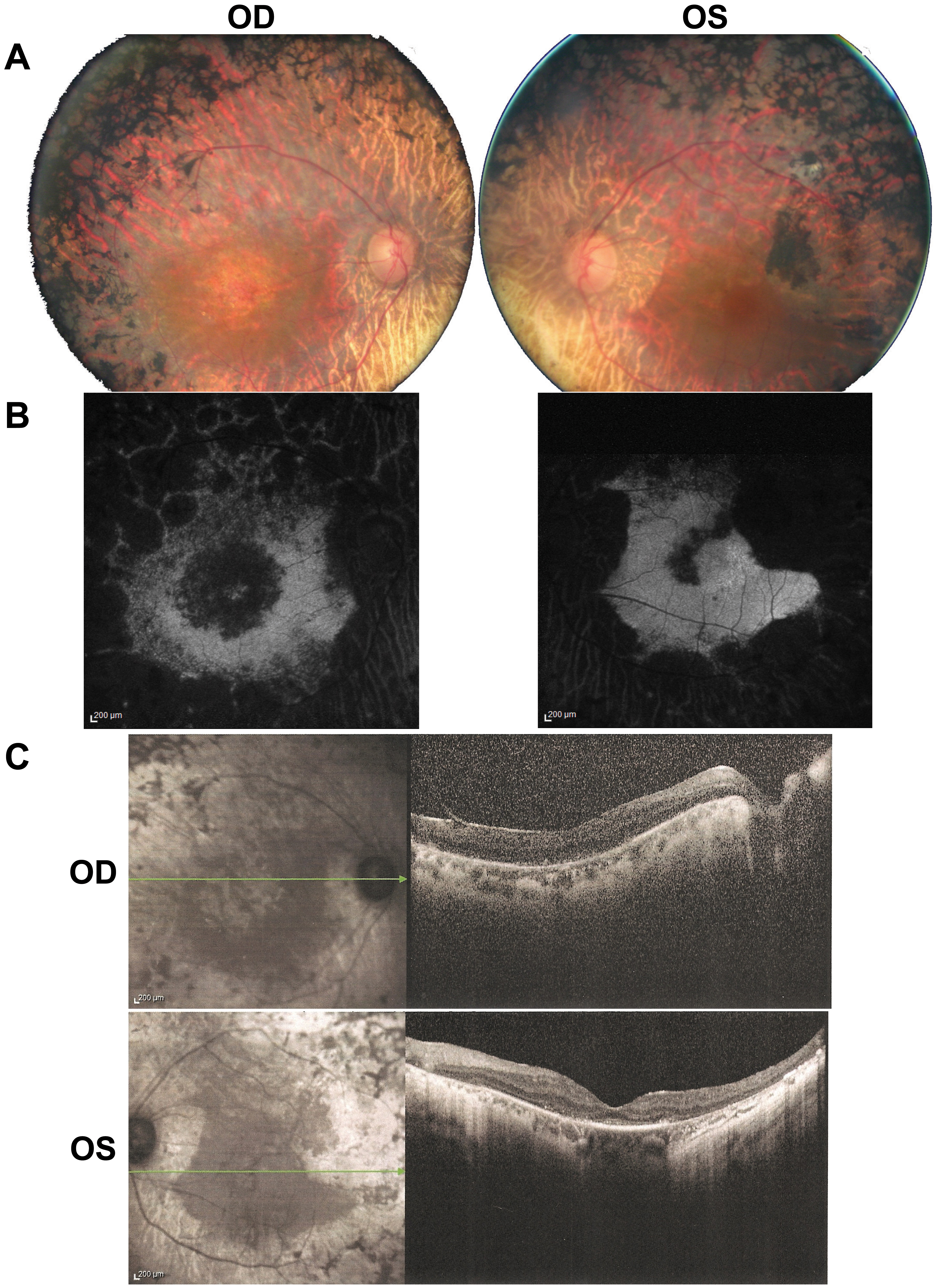 autofluorescence in the midperiphery and in the perifoveal region. C: