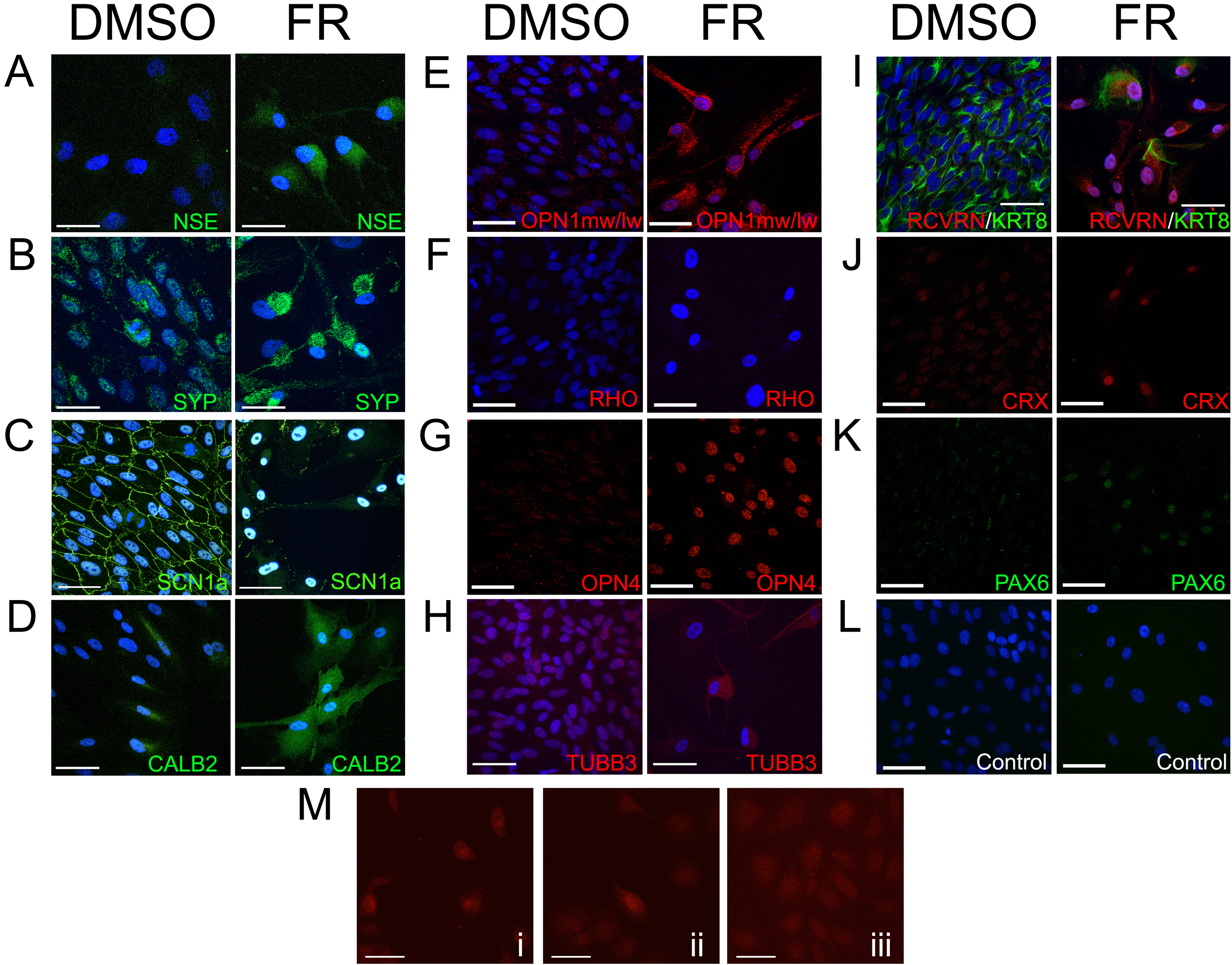 staining for CALB2 (red). All scale bars are 50 μm.
