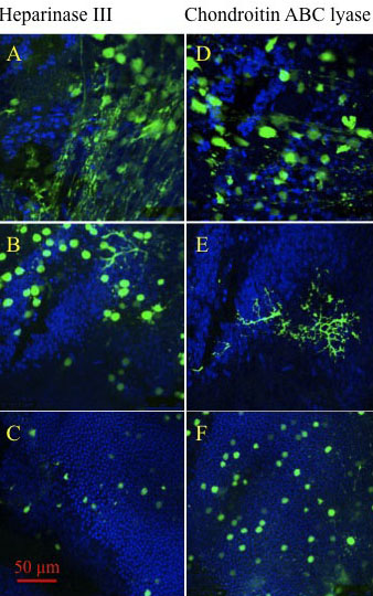 Figure 4. Sample confocal slices of retinas treated with AAV2.CBA.eGFP and heparinase III or chondroitin ABC lyase. GFP fluorescence