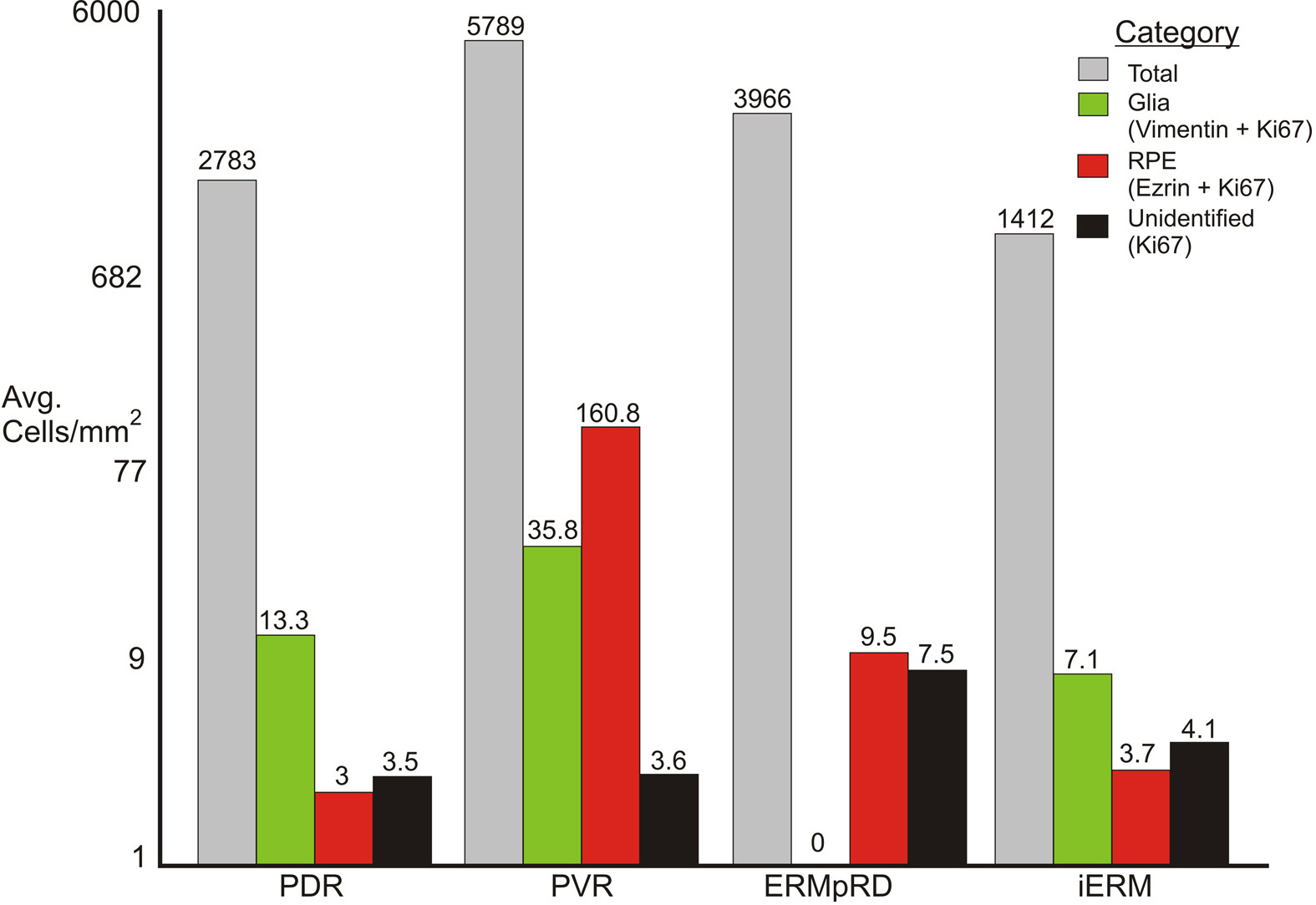 epiretinal membranes (ERMs) in the group. The average number of glial
