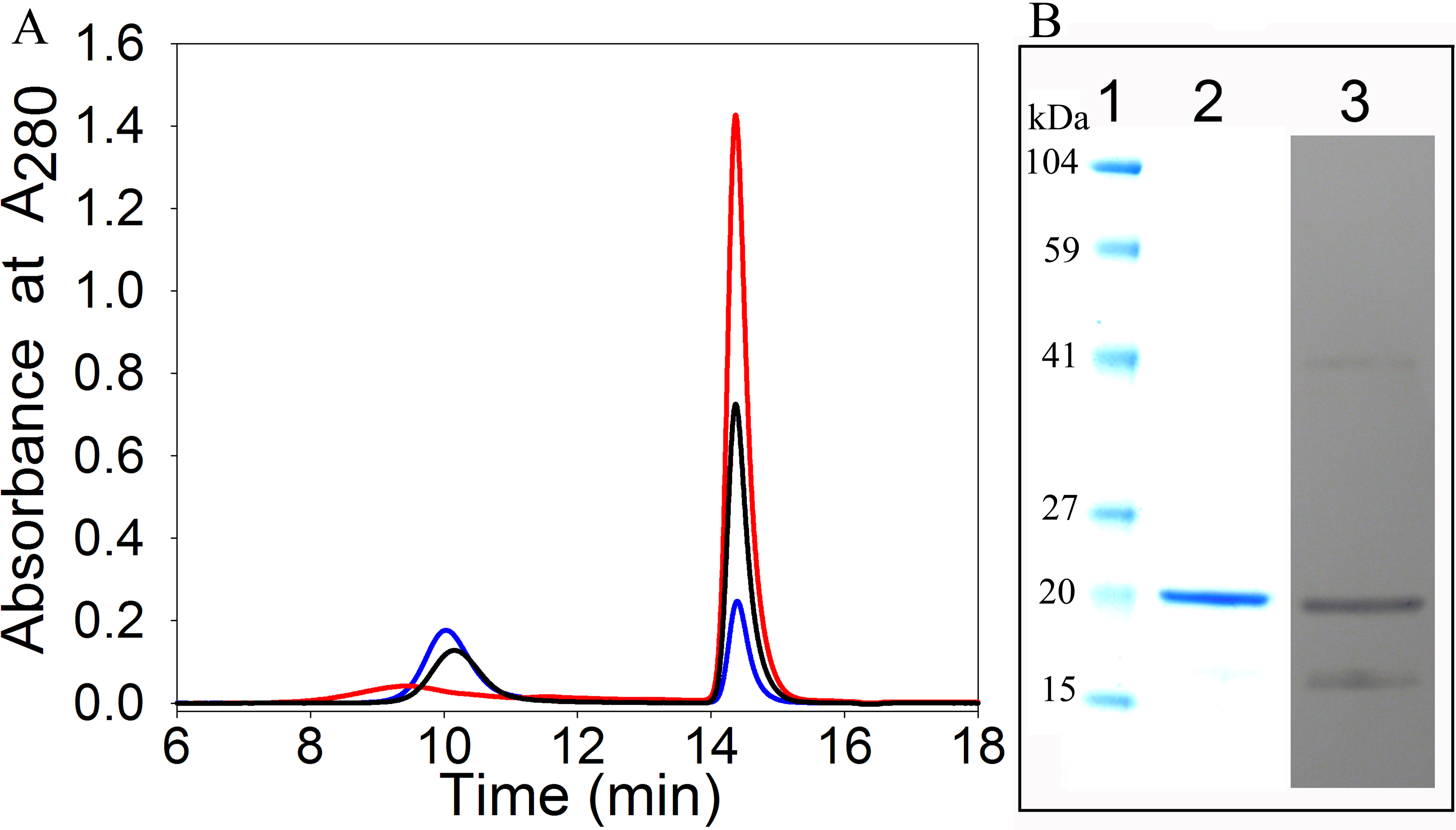 0.2 mg/ml and Red, 0.1 mg/ml. B: SDS–PAGE and immunoblot of