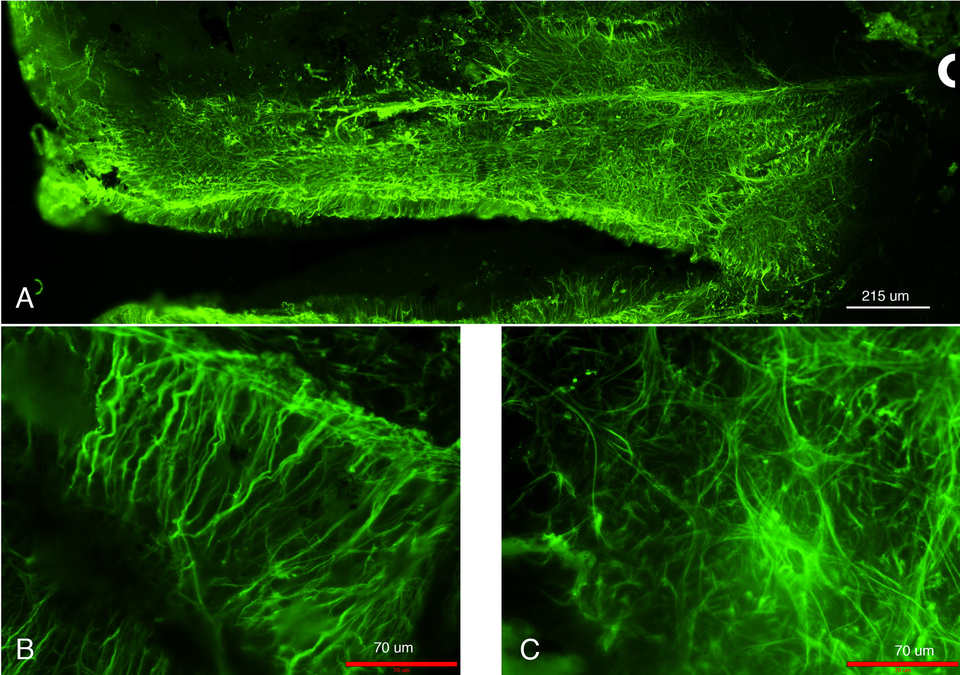 showing GFAP staining. For orientation purposes, the optic nerve is
