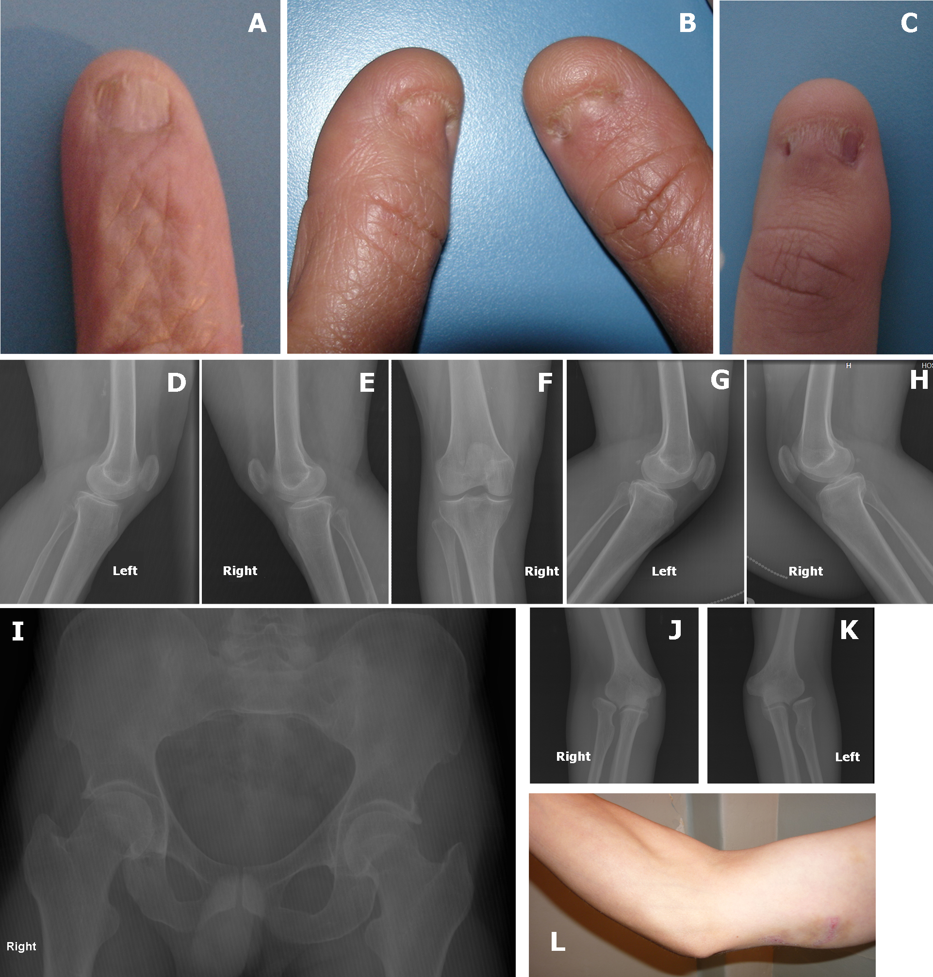 radiographs of knees, hips and elbows of some of the subjects. Nail