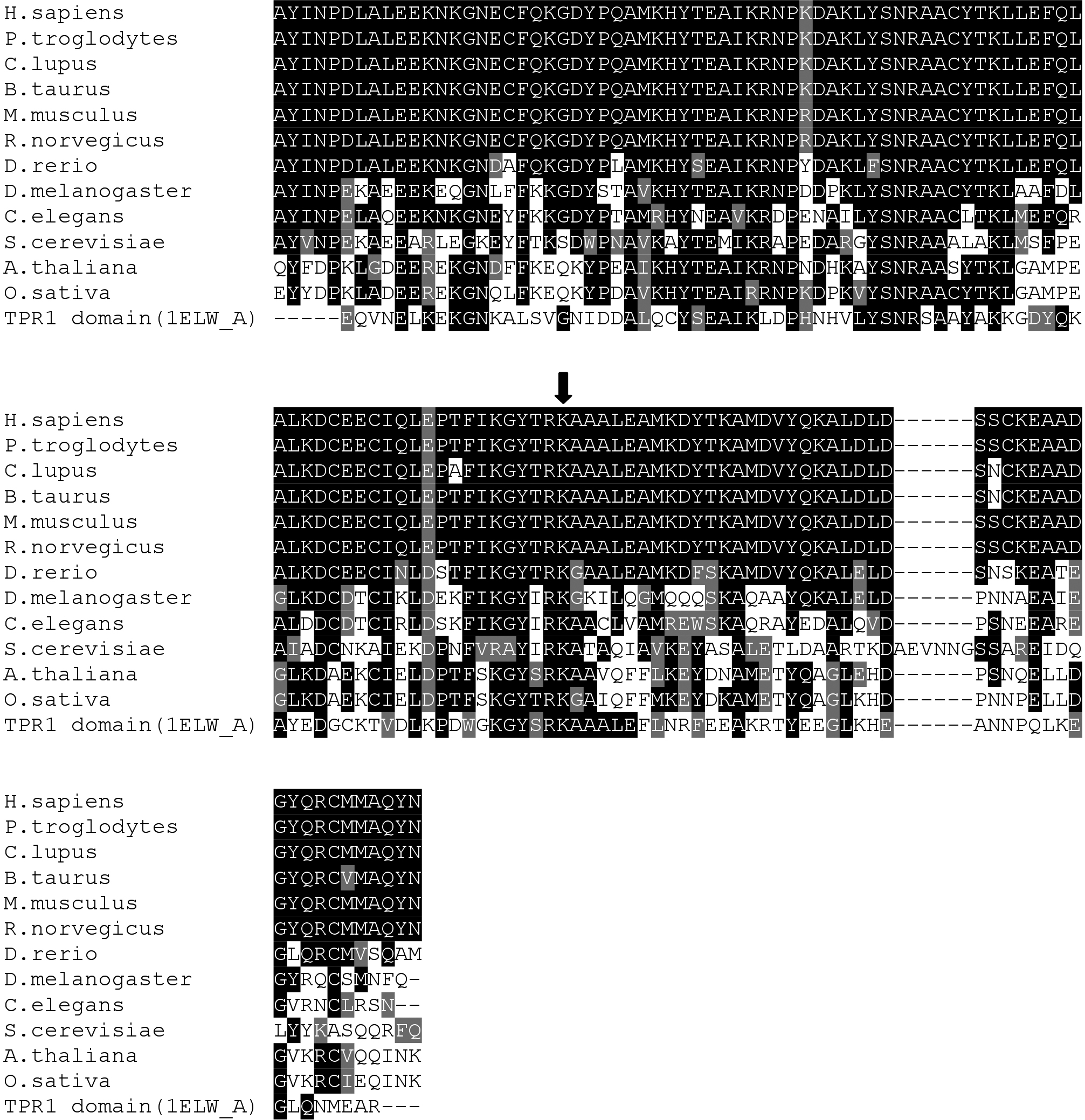 K434 (indicated by the arrow). Alignment to the human TPR1 domain was
