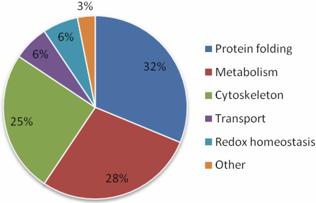 categories annotated in the proteomic databank. The proportions of annotated functions related to protein folding, metabolism,