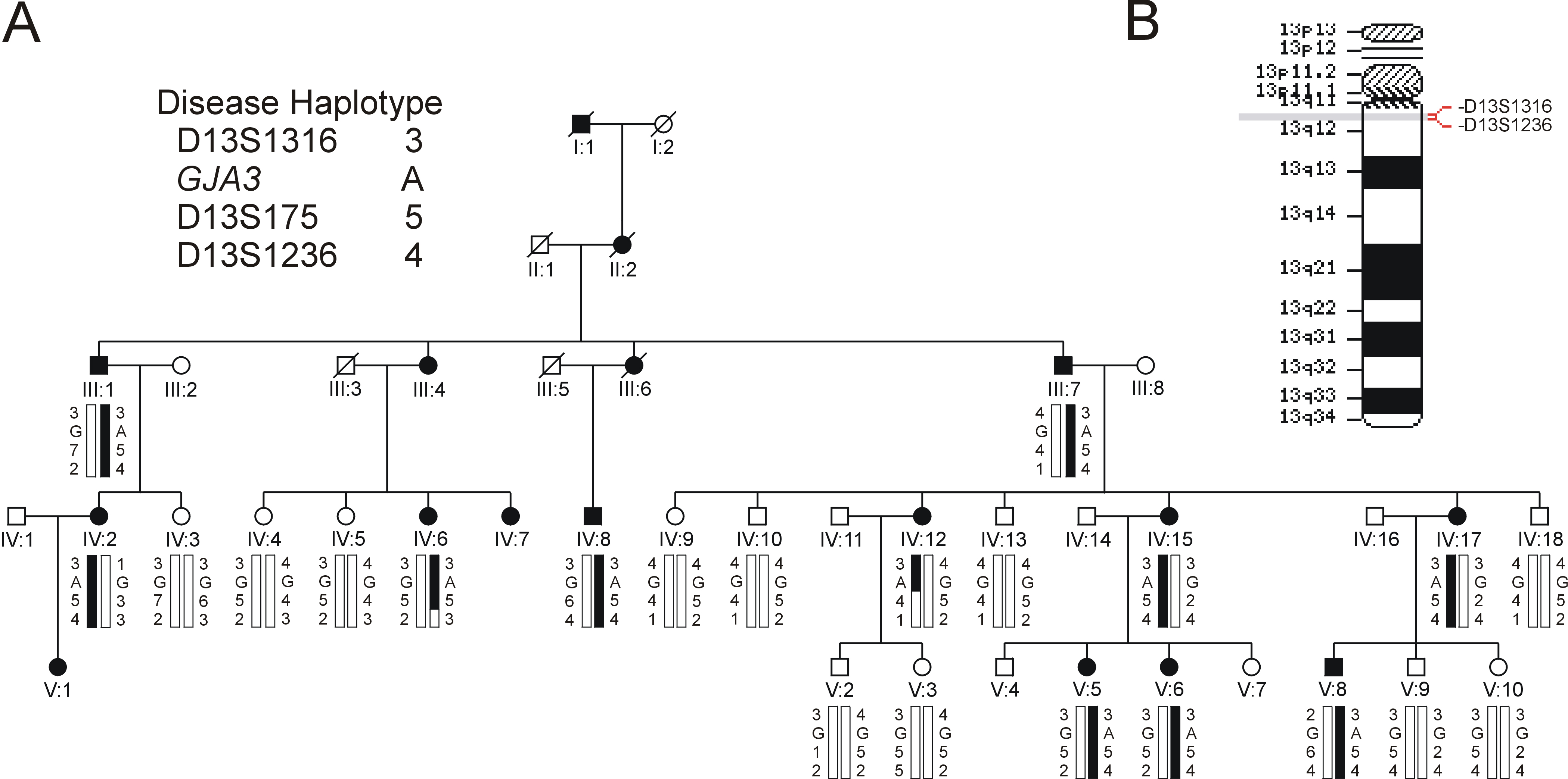 Caucasian American pedigree (family Sh). A: Pedigree and