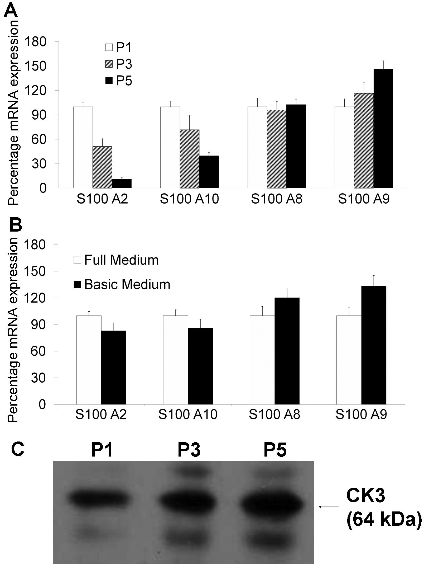 CK3 protein in P1, P3, and P5 limbal epithelial cells.