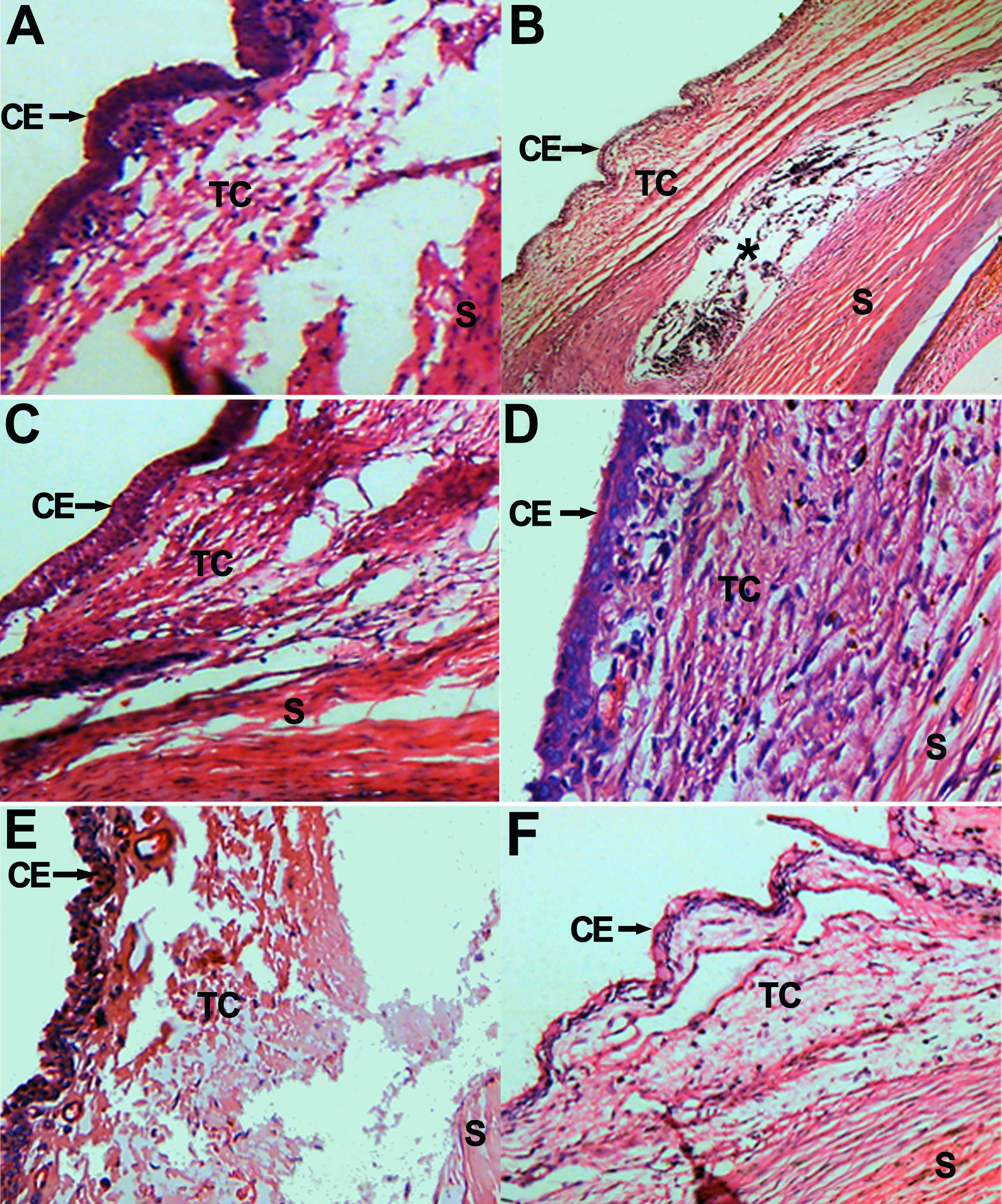 Capsule (TC) at 7 days post-op. *represents sustained-release