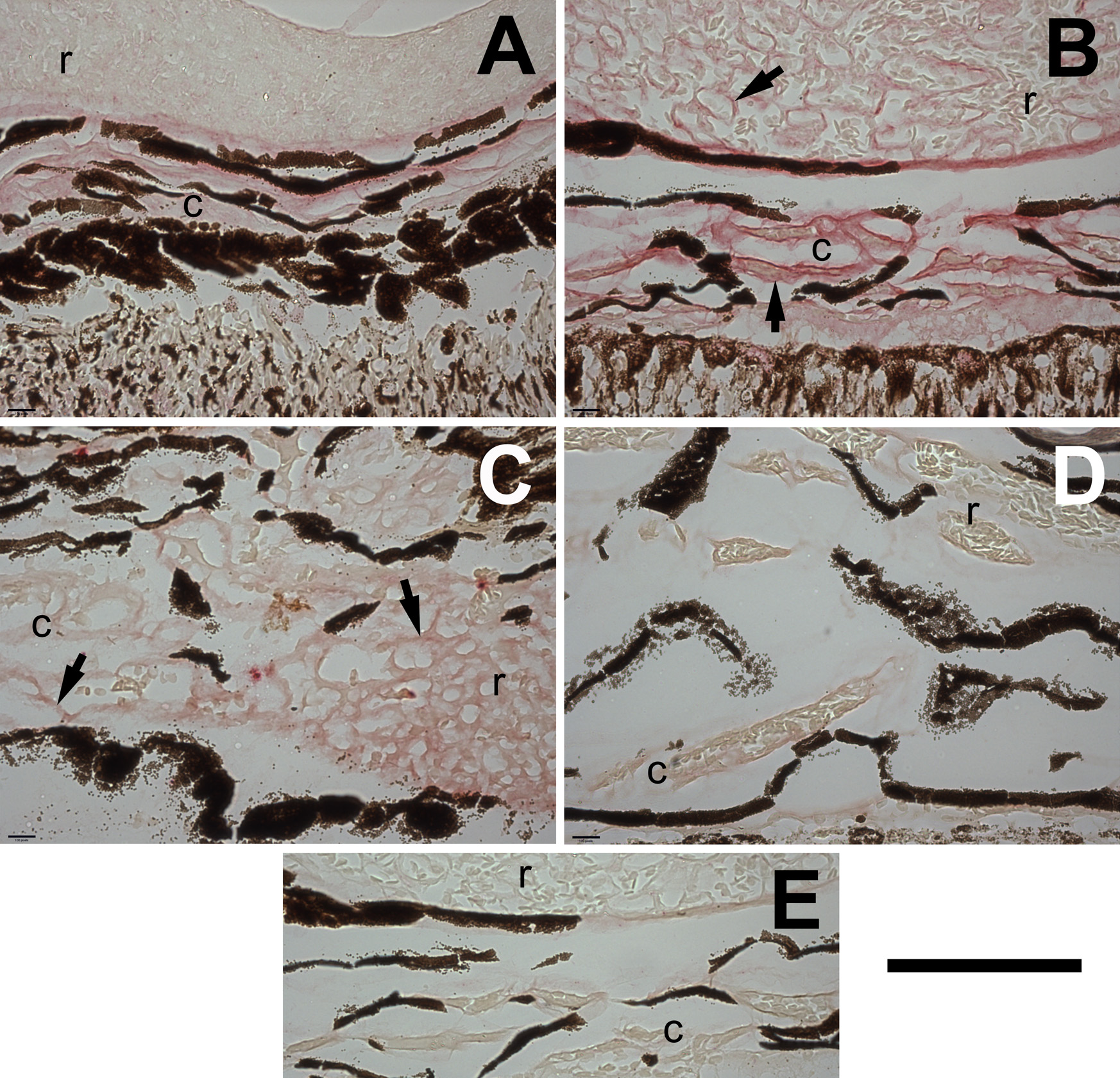 specimen/ZO-1 stain), the endothelial linings of the choroidal