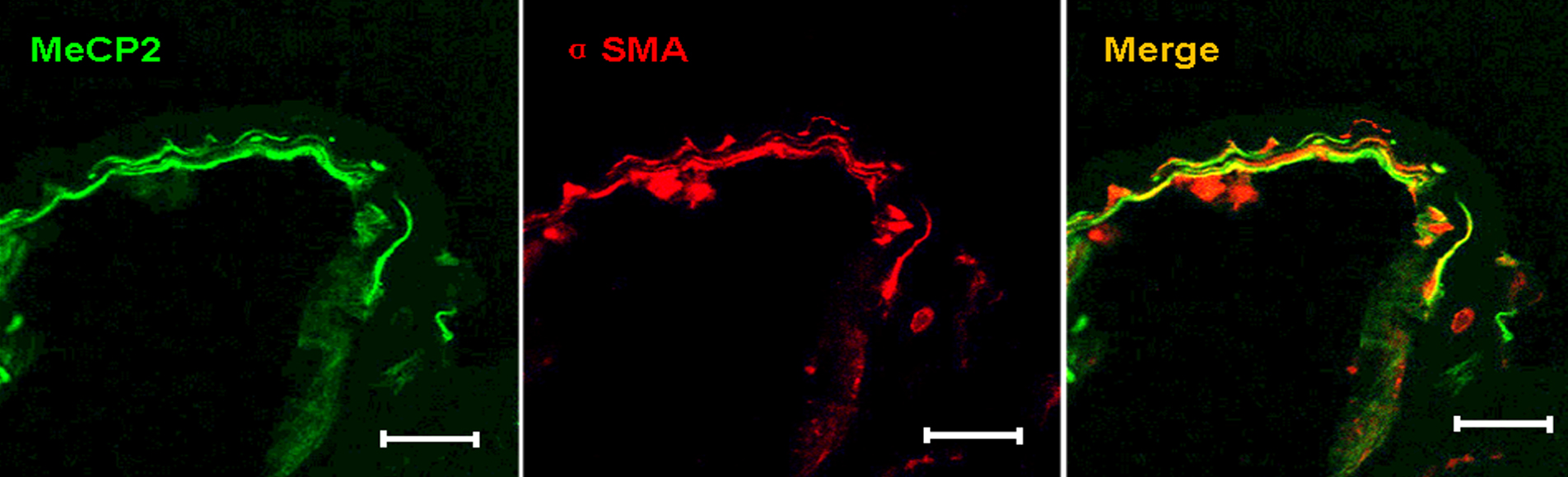 membrane were stained by immunofluorescence for MeCP2 and α-SMA