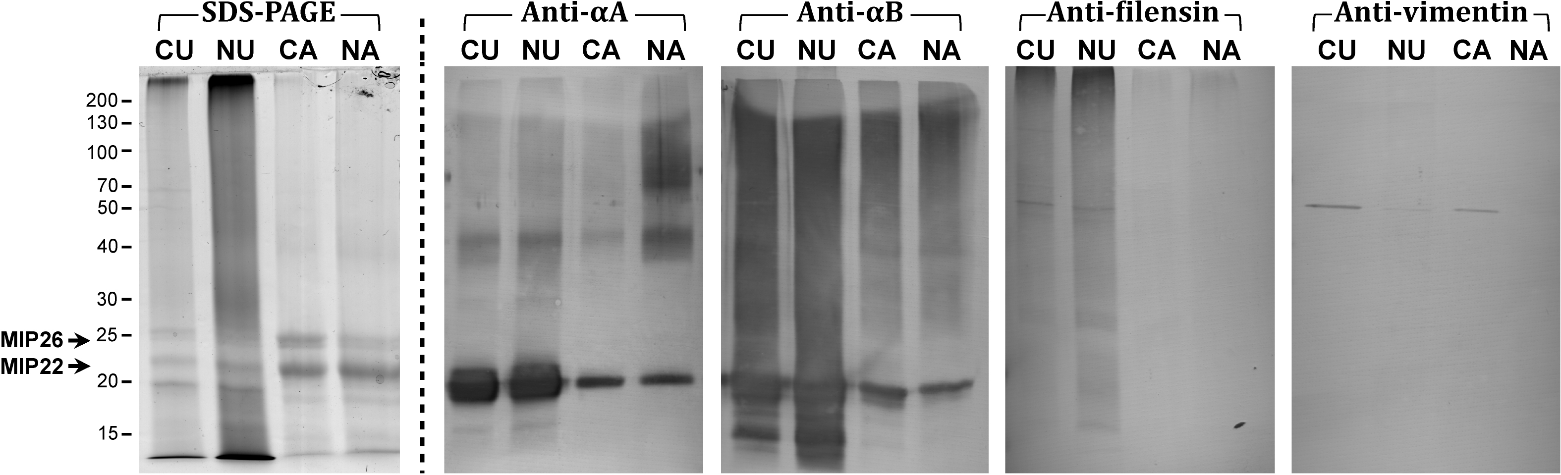 using anti-αA-crystallin, anti-αB-crystallin, anti-filensin and