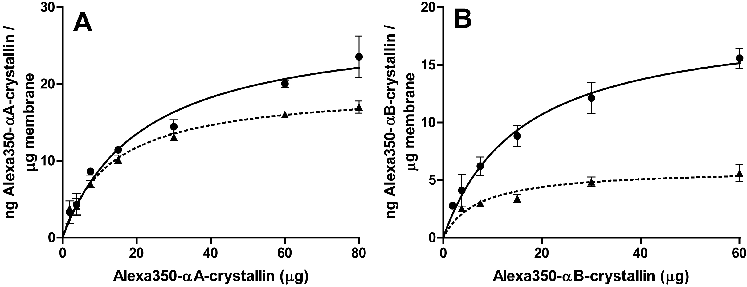 (▲) bovine lens membrane as a function of the free α-crystallin