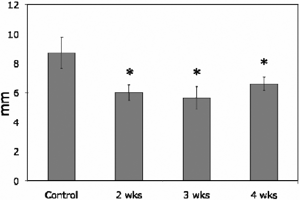 scores were reduced to 6±0.54 mm at 2 weeks’ pregnancy, 5.63±0.77 mm at 3 weeks, and 6.59±0.45 mm at 4 weeks pregnancy, with
