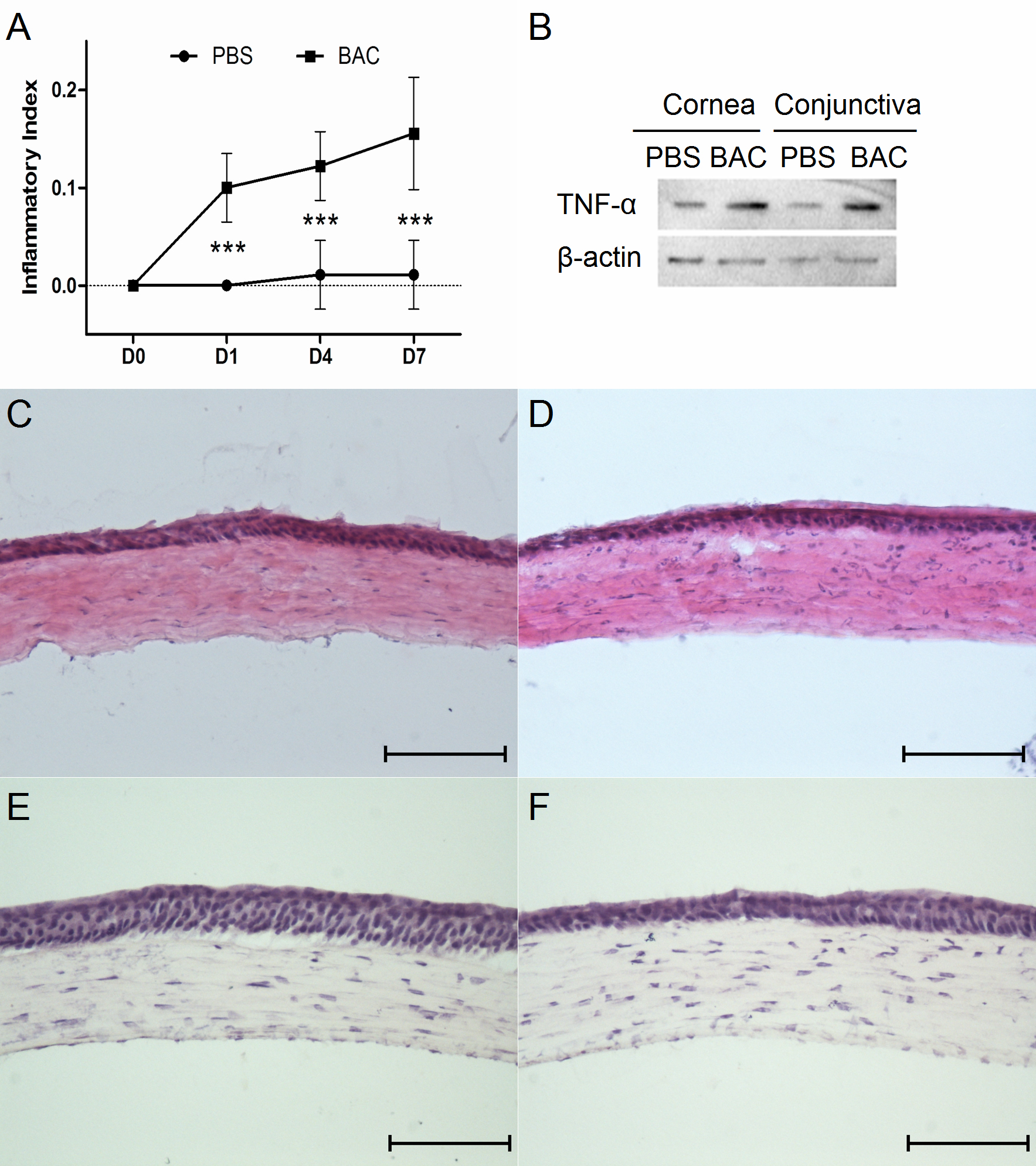 inflammatory index after BAC treatment. TNF-α expression was elevated