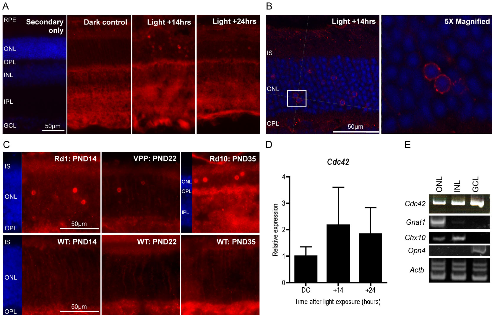 B: The outer nuclear layer (ONL) of CDC42 stained retinal