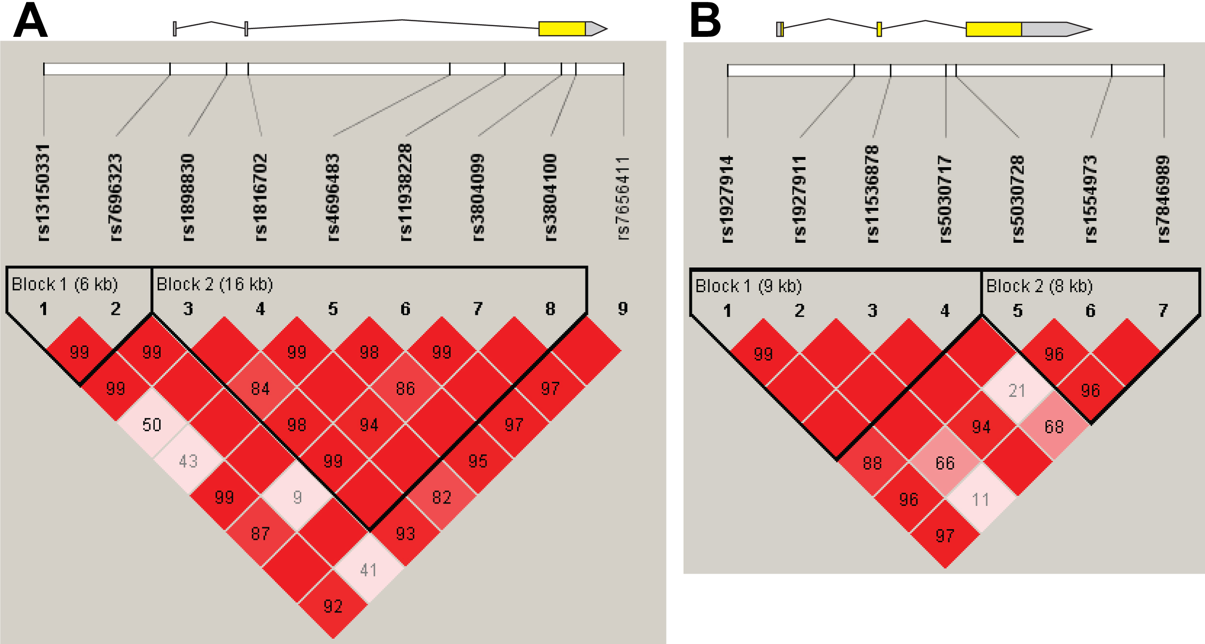 Linkage disequilibrium at toll-like receptor (TLR) loci.