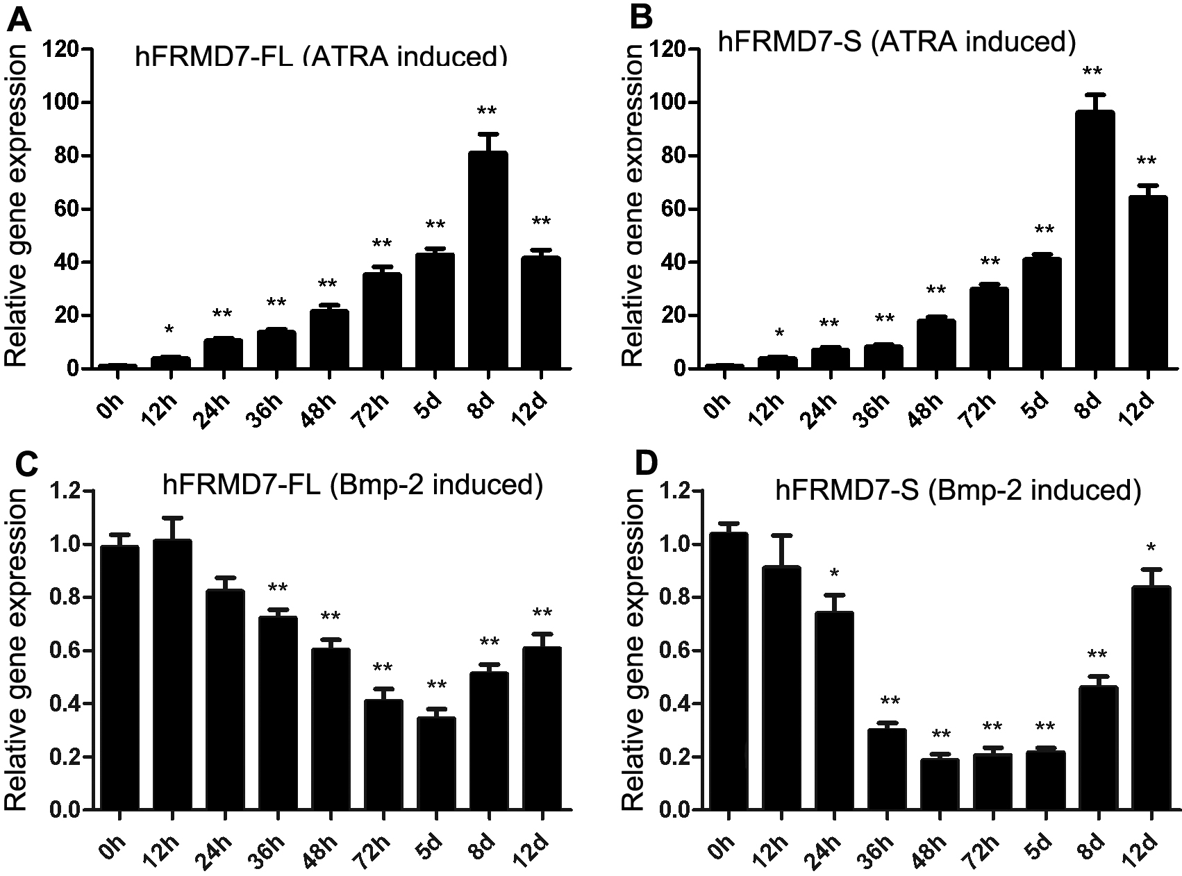 Expression levels of hFRMD7-FL and hFRMD7-S