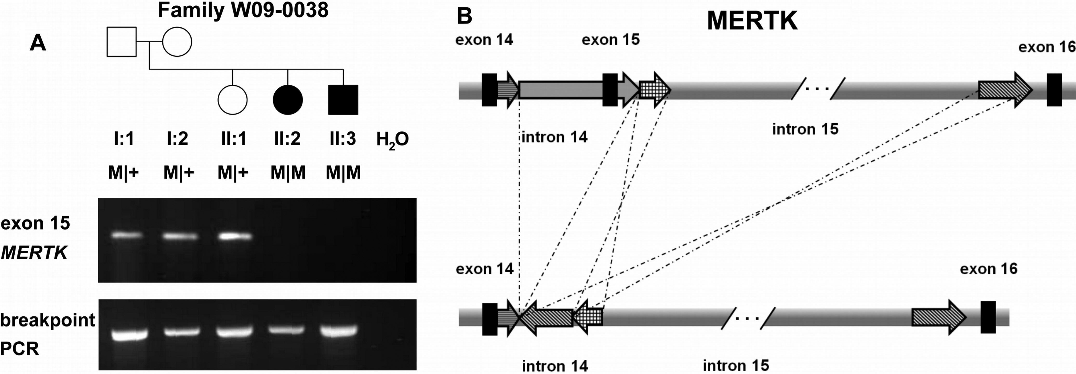 of MERTK in family W09–0038. A: In the upper panel, PCR