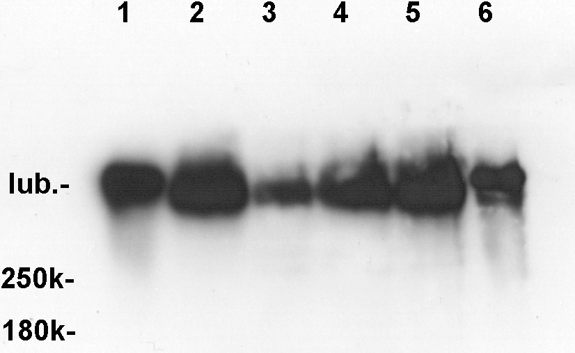 Western blot analysis showing the position of the lubricin bands on the gel relative to the 250K and 180K ProSieve QuadColor protein markers (#00193838; Lonza, Rockland, ME).