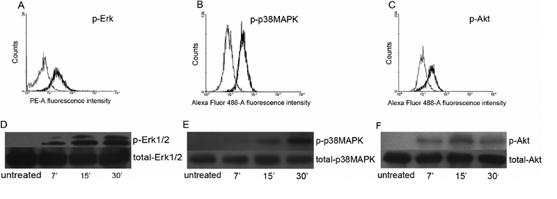 example and MFI result expressed as the mean±SD of three independent experiments are shown for the phosphorylation of Erk1/2
