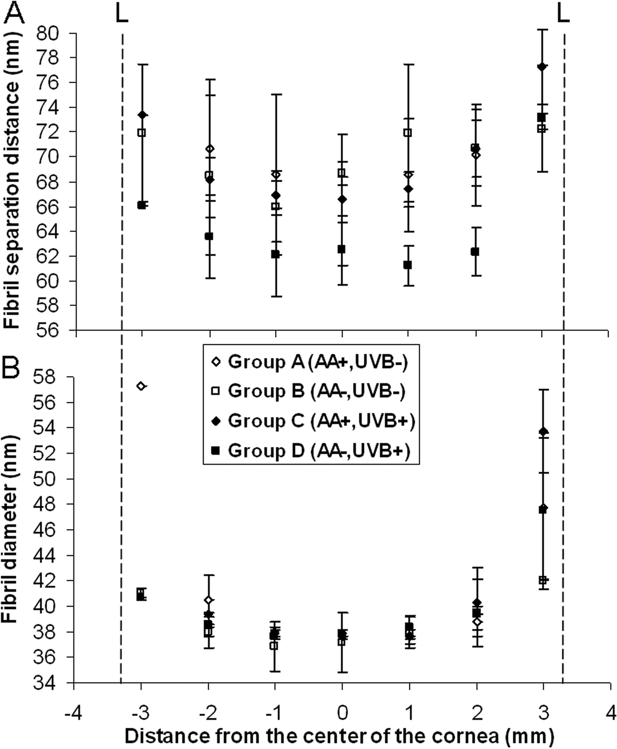 (Groups A: n=3; B: n=2; C: n=3; D: n=3). In the UVB-exposed