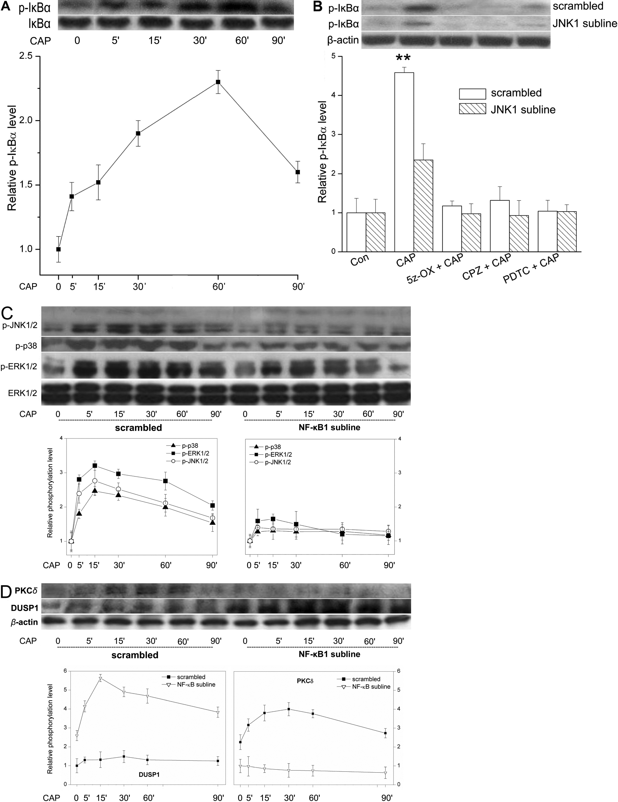 CPZ (10 µM) or PDTC (50 µM) for 60 min suppressed CAP-induced