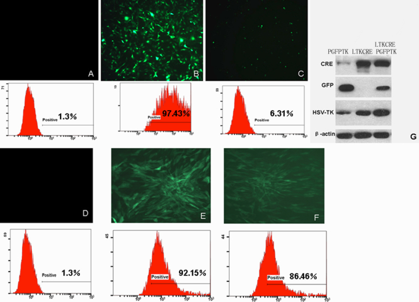 and 86.46%, respectively. Cre, EGFP, and HSV-tk protein expressions in HLECs were analyzed by western blot for cells infected