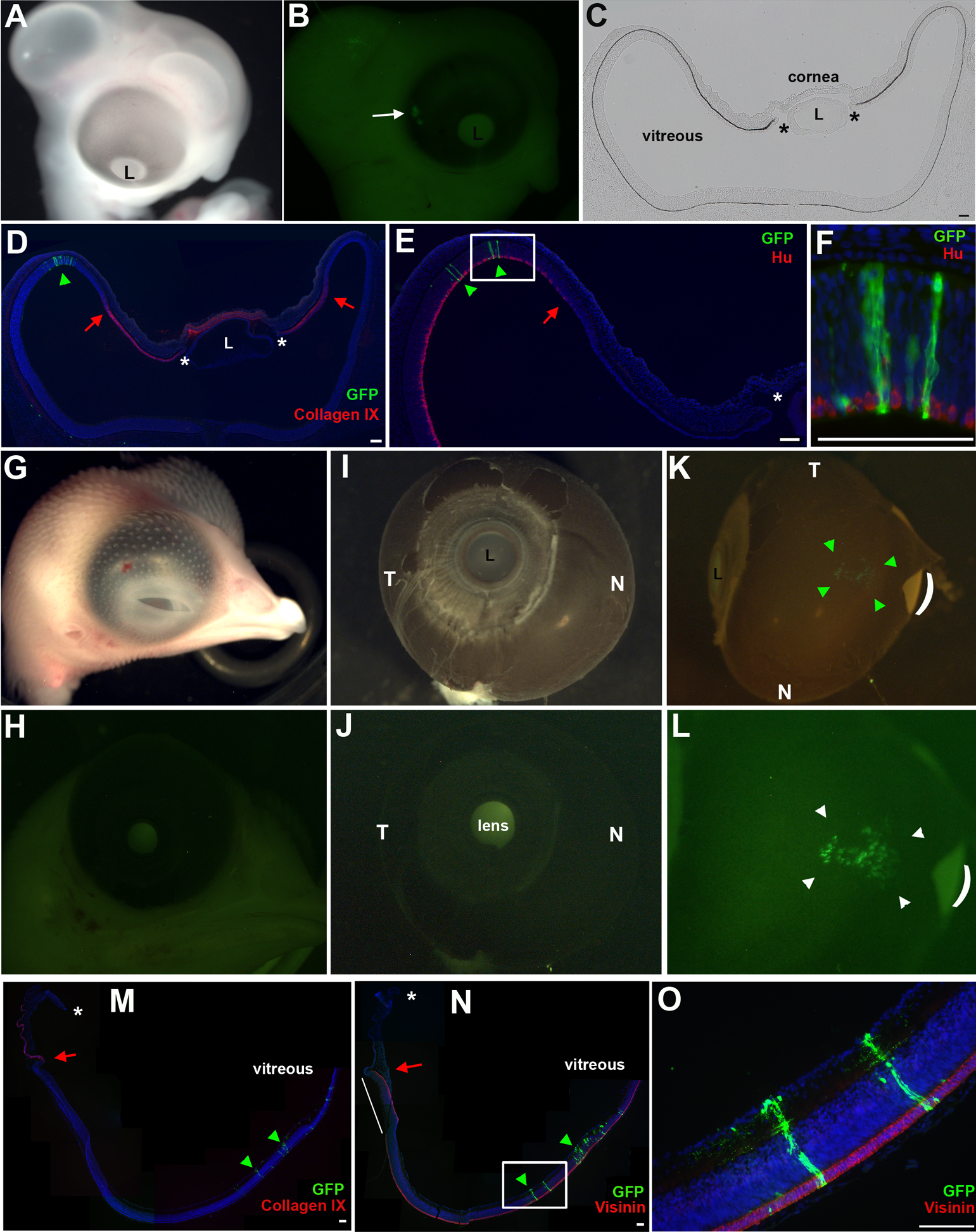Scale Bars: 100 µm. N; Nasal, T; temporal, L; Lens.