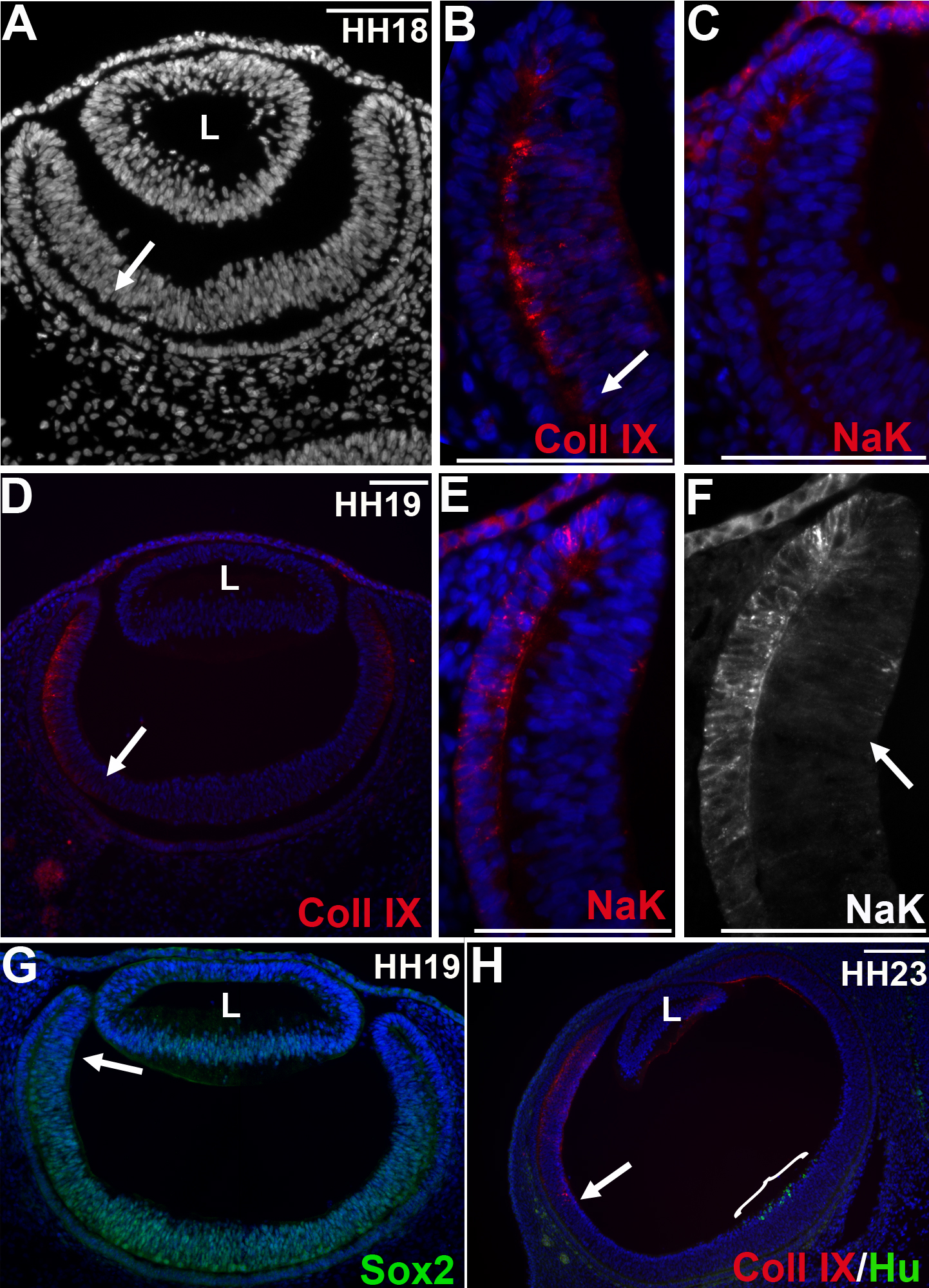 Hamburger Hamilton Stage, Coll IX; Collagen IX, NaK; NaK-ATPase.