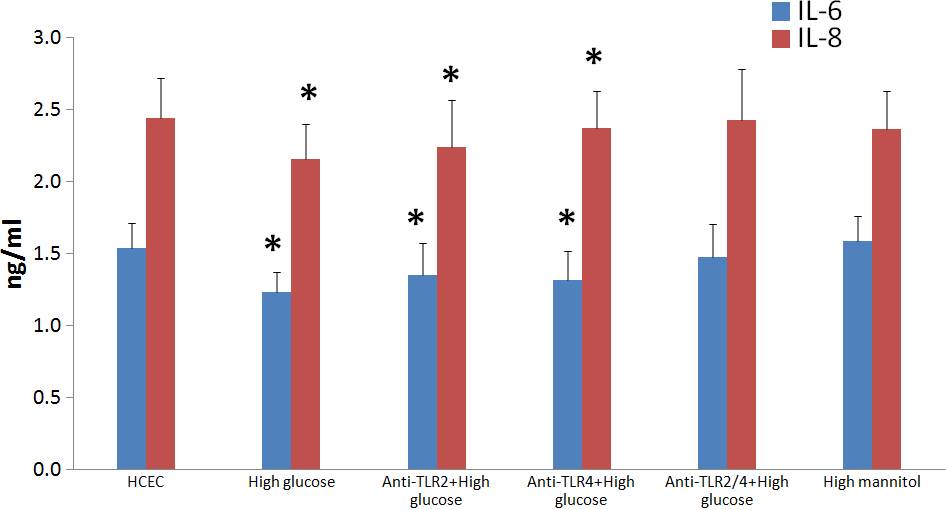 without TLR2 and TLR4 monoclonal antibody (1:200). The untreated HCEC is regarded as control. Data are the mean±SEM of triplicates